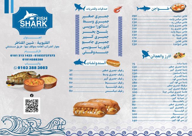 منيو أسماك القرش اجود انواع الاسماك