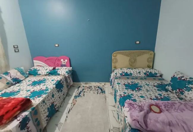شقة مفروشة ٣ غرف وصاله وحمام ومطبخ اول بلاكونه . بها تلاجه وغساله نص فول وبوتجاز وسخان وركنه و٥ سراير ودولابات فرش كامل