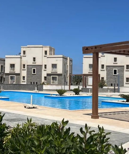 دوبليكس جاردن جاهز للسكن 3 غرف نوم تشطيب الترا سوبر لوكس بالتكييفات و المطبخ برايم لوكيشن اوبن فيو لاند سكيب في امواج الاهلي صبور الساحل الشمالي