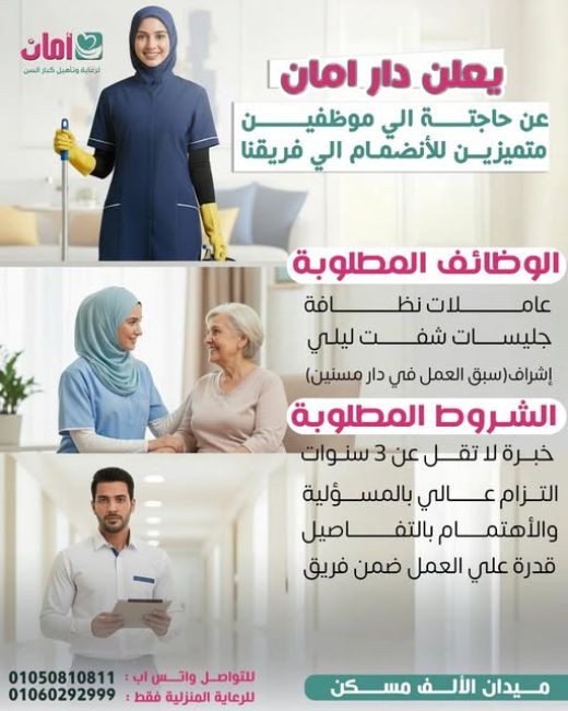 إشراف (خبرة سابقة بدور رعاية كبار السن شرط أساسي)