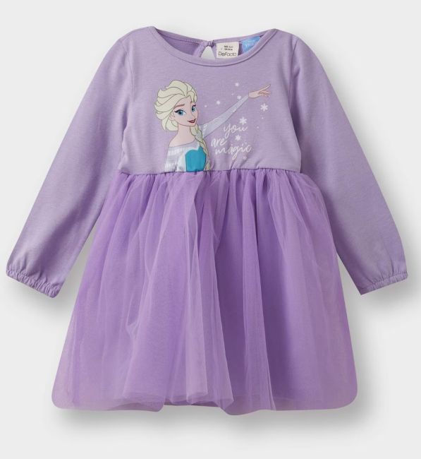 فستان بناتي تول قصة عادية كم طويل بياقة مستديرة من فروزن