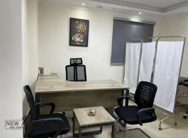 المساحة ٥٥ متر مربع مقسمة إلى استقبال، غرفة فحص، حمامين، مطبخ