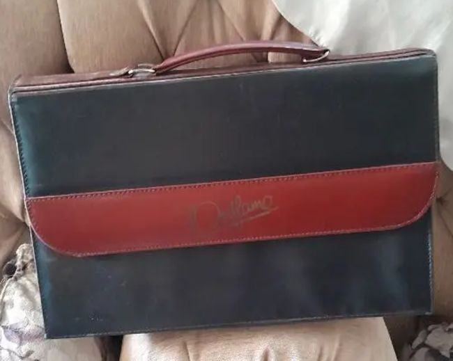 شنطة جلد طبيعى اسود بخط بنى